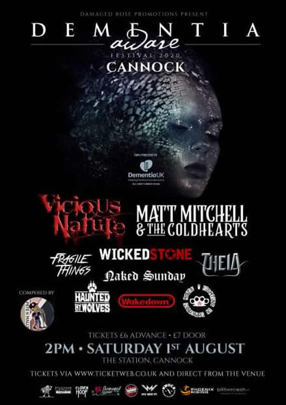 Due to a last minute change, Vicious Nature have stepped in to co-headline the Dementia Aware Fest charity festival. The boys will be on-stage at 9:15pm.