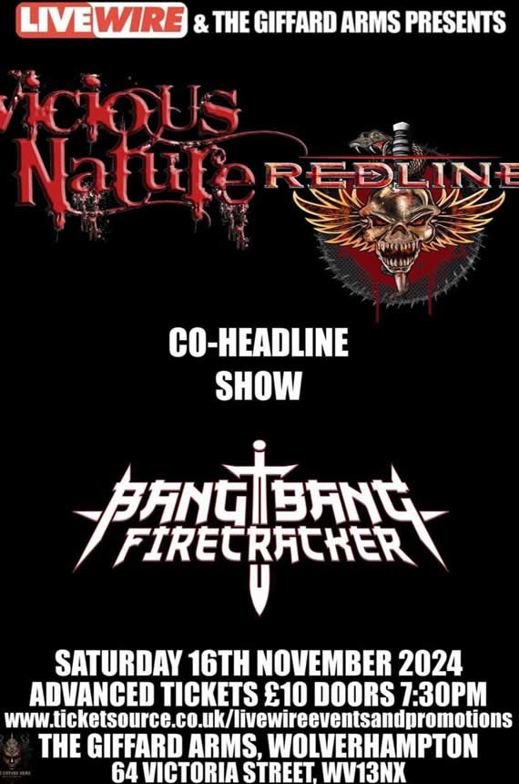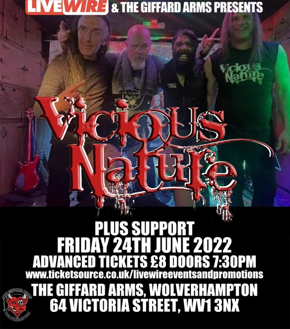 Click here to get special priced tickets for the upcoming show at Wolverhampton's Slade Rooms where Vicious Nature are supporting Firewind.