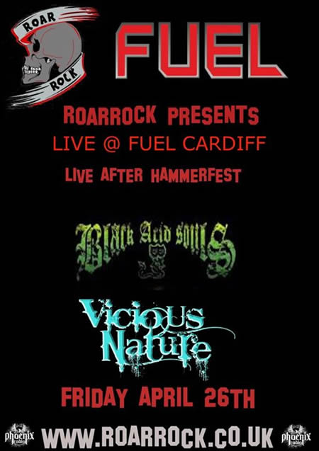 After a trumphant set at Hammerfest V, VICIOUS NATURE return to Wales to play Fuel Rock Club in Cardiff on April 26th with support from fellow Hammerfest band Black Acid Souls.
