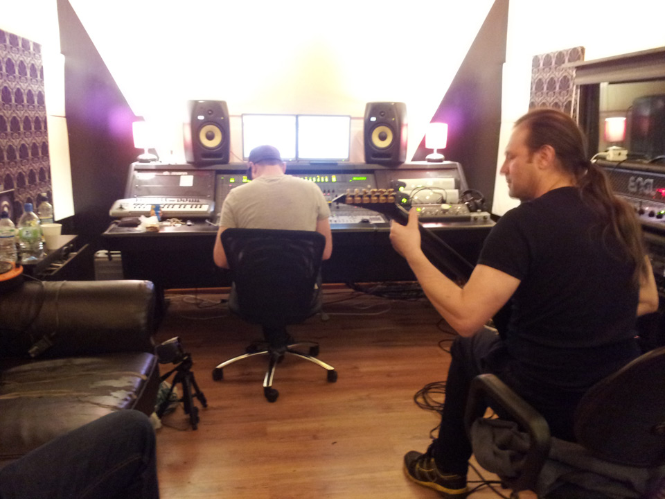 Now its time for Andy S to record the rhythm guitar tracks. Surprisingly enough he is using a Jackson, this time his trusty RR5 hardtail with EMG81 rear and EMG85 front pickups, being run through an ENGL Fireball amp with ENGL 4x12 cabs both mic'd and DI'd, no external effects... An awesome rhythm sound. Once again the odd computer issue slows things down a bit.